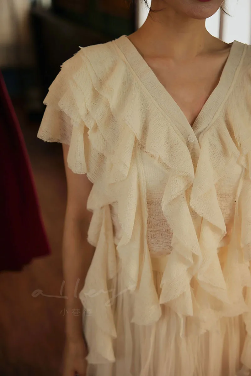 它每一層荷葉隨著走動、微風吹過而輕輕飄逸