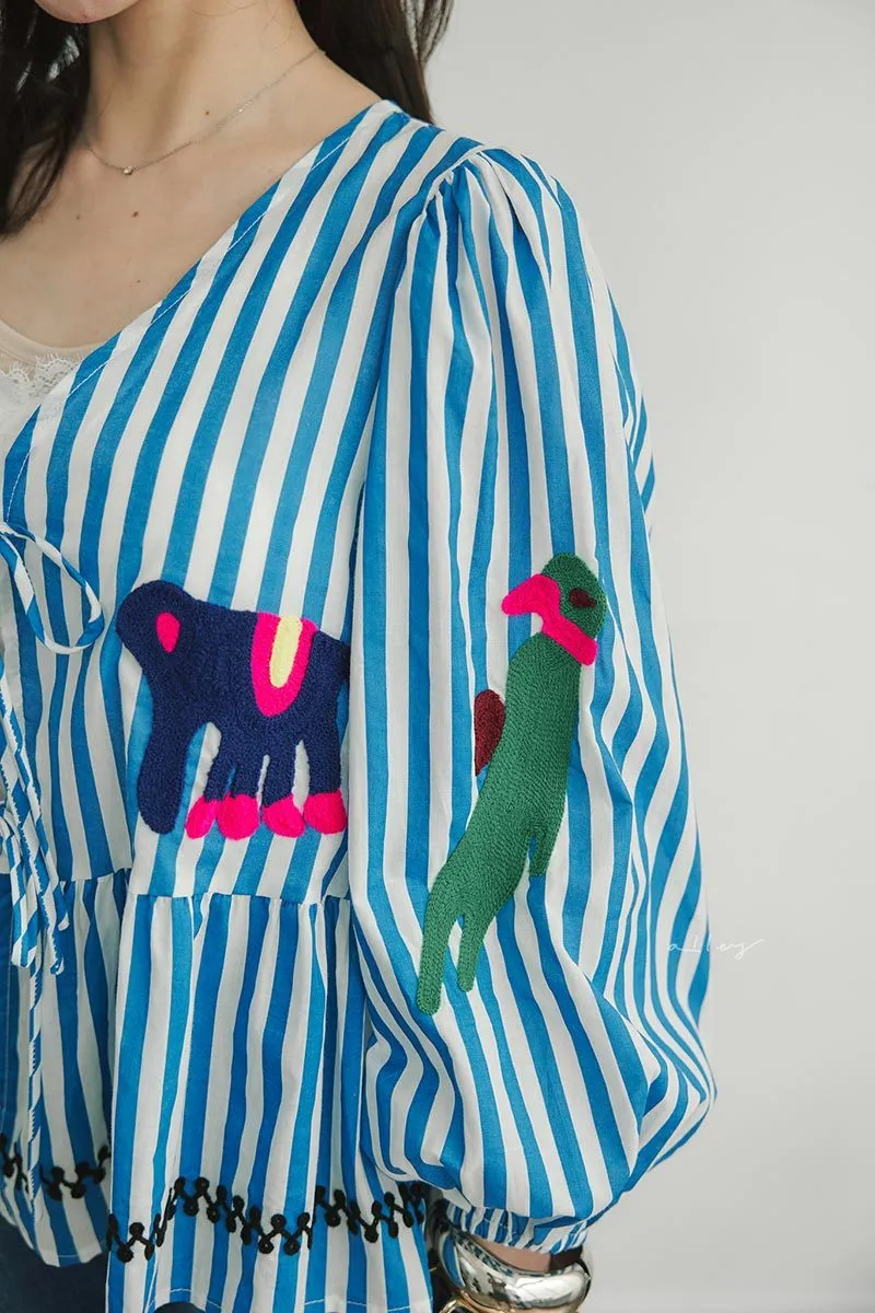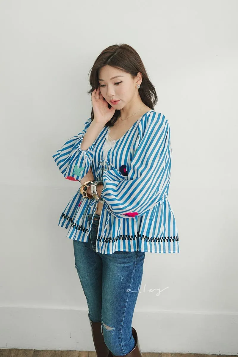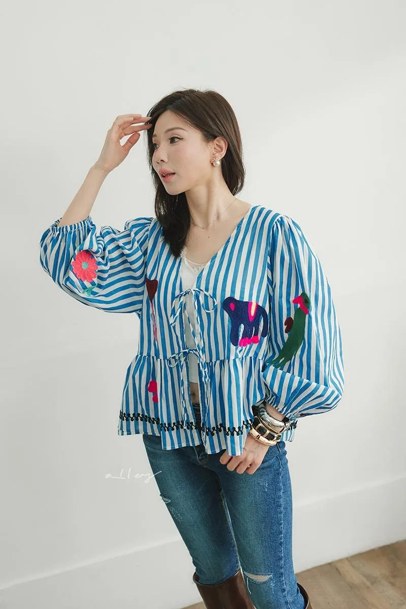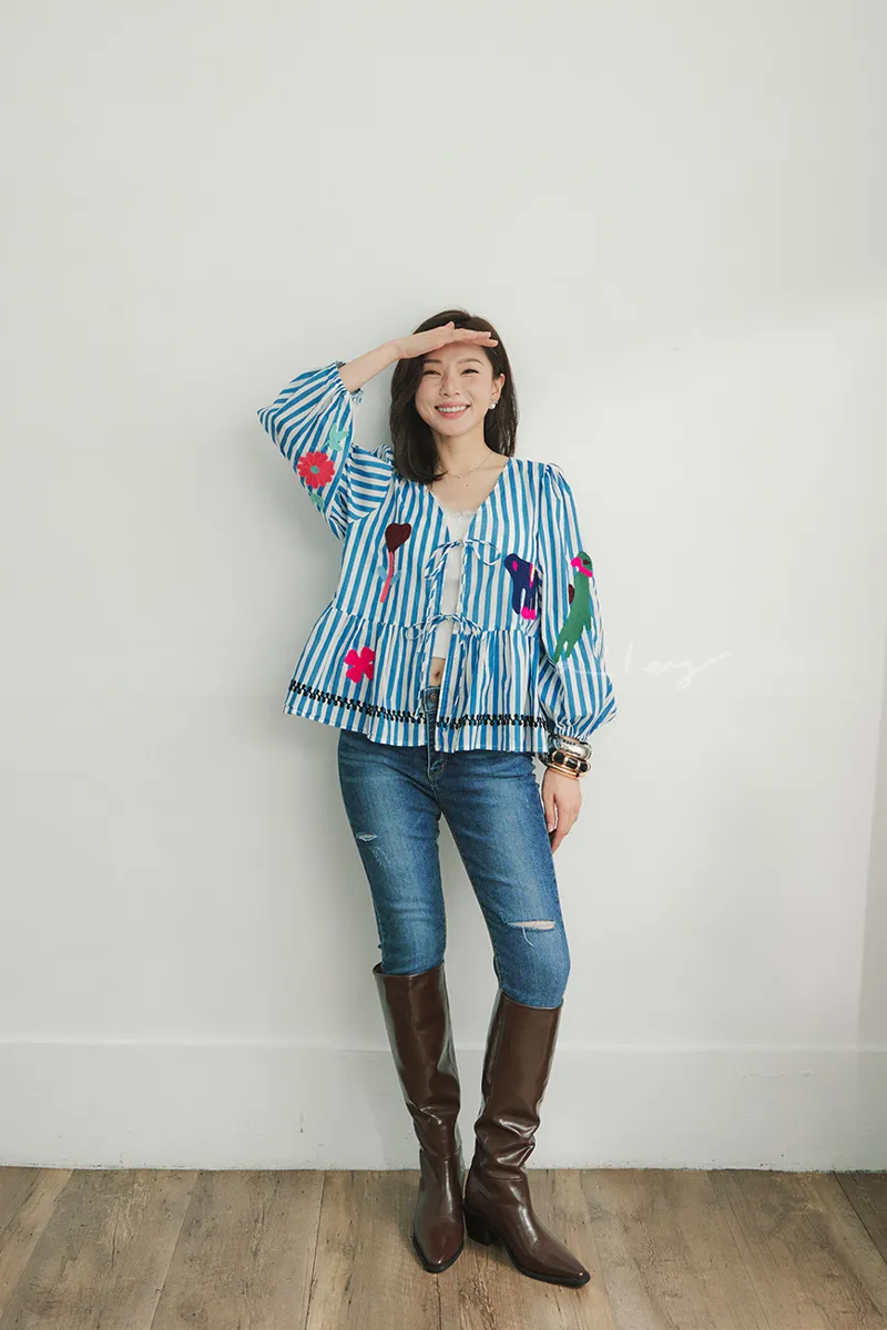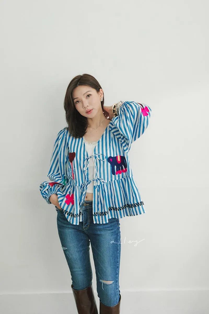 Soft Rebel設計系女子的電繡綁帶襯衫