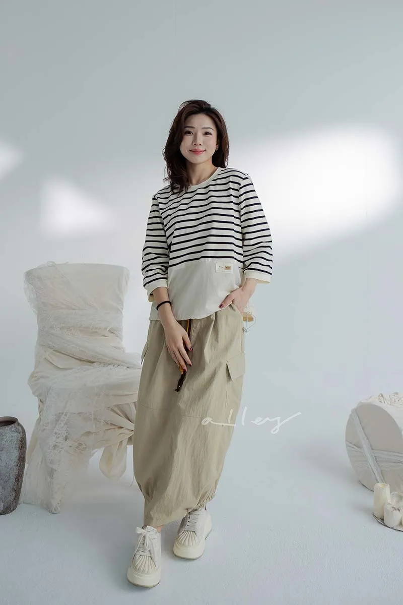 它在下襬拼接了一截純色布料,瞬間把層次感拉滿